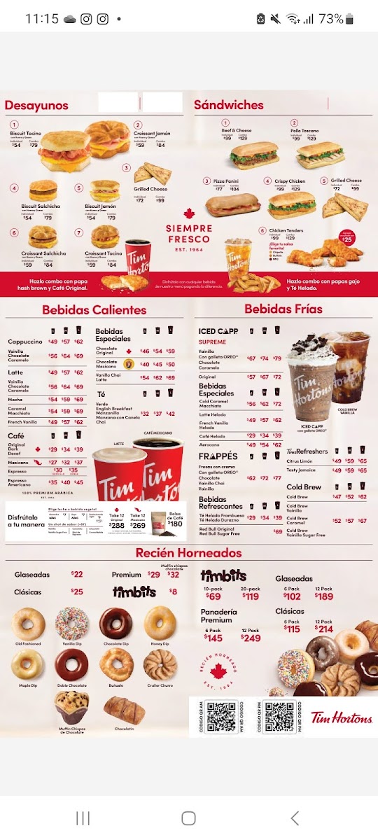 Welcome to Tim Hortons Ordoñez, a delightful café located in the heart of Santa Catarina, Mexico. This energetic spot brings a blend of classic café culture and contemporary taste. The menu features an array of delicious options that cater to both coffee enthusiasts and food lovers.